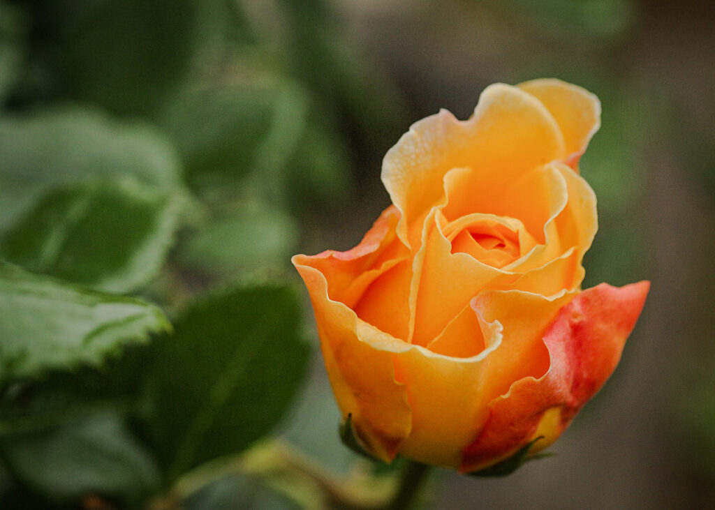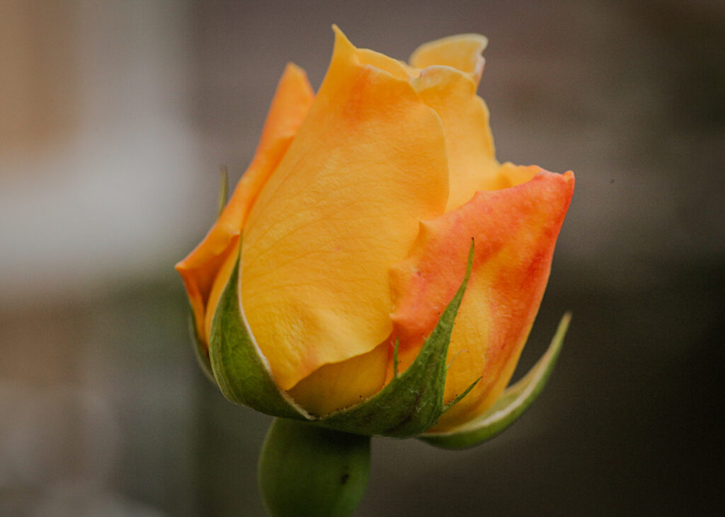 少しずつ開き始めた蕾は、ボリューム感がある。濃いイエローから赤みがかったグラデーションが非常に美しい。
